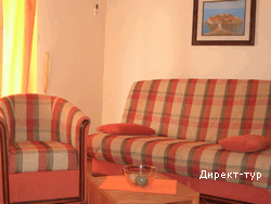В APP 04: Спальня, гостиная, кухня, санузел, терраса. В спальне: французская или раздельные кровати, кондиционер, выход на террасу. В гостиной: диван, кресла, телевизор (спутниковое ТВ), выход на террасу. Кухня: электроплита, мойка, холодильник, чайник (или кофеварка), посуда.
