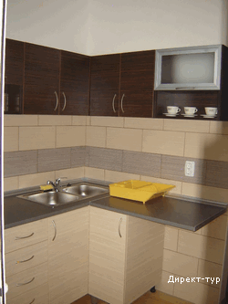APP 04 PRIZ: Первый этаж, две спальни с французской и раздельными кроватями, кухня, обеденная зона, ванная комната, 2 террасы. Кондиционер, кабельное телевидение, беспроводной интернет, холодильник, утюг, гладильная доска, фен. (53 м2)