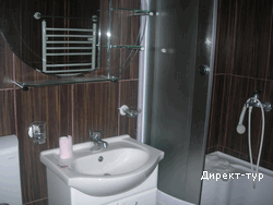 TRPL PRIZ: Первый этаж, коридор, спальня с раздельными кроватями, ванная комната, общая терраса перед входом, кондиционер, кабельное телевидение, беспроводной интернет холодильник, утюг, гладильная доска, фен. (15 м2)