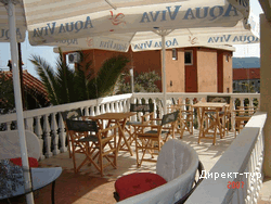 В 100м от мелко-галечного муниципального пляжа (лежак – 3 евро, зонтик – 3 евро). Водные виды спорта (лодка, катамаран) – за дополнительную плату.