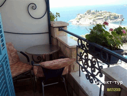 В отеле несколько двухместных и трехместных номеров с видом на море или на горы и два больших аппартамента с видом на морена4 человека (максимум - 6 человек). Балконыво всех номерах.На первом этаже – ресторан с большой террасой.Room service круглосуточно.Интернет во всех номерах, сейф нарецепции.