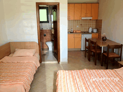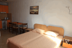 двухэтажная вилла, всего 4 номера - 1 номер на первом этаже и 3 номера - на втором, перед входом в номер - терраса. Закрытая, уютная территория, зеленый газон, фруктовый сад, свой паркинг, большая терраса с видом на море, зонтики и лежаки бесплатно, зона барбекю, детская площадка, интернет. Уборка номера и смена полотенец по желанию гостей.