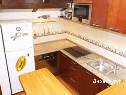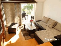 Две спальни, гостиная, полностью укомплектованная кухня, ванная комната, площадью – 72 м2. В первой спальне – французская кровать, во второй – французская и односпальная кровати. В гостиной - раскладной диван, кресла, столовая зона. Центральное система кондиционирования, регулируемая отопительная система, кабельное телевидение, DVD-проигрыватель, холодильник, посудомоечная машина, микроволновая печь, стиральная машина. Терраса, оборудованная столом и стульями.
