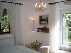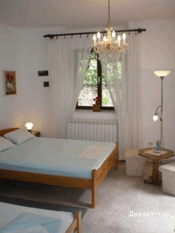 Вилла, окруженная зеленым садом, есть паркинг. В саду – стол, стулья, лежаки, электрический гриль, душевая. Для размещения предлагаются трехместные студии.