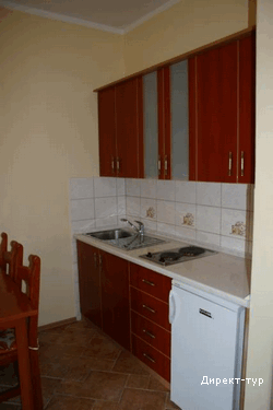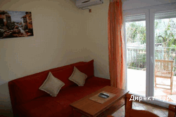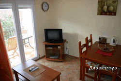 Площадью – 38 м2, отдельная спальня и гостиная с кухней. В спальне – французская кровать, в гостиной – оборудованная кухня, обеденная зона, раскладной диван. Кондиционер, кабельное телевидение, беспроводной интернет, отопление, ванная комната с душевой кабиной, фен, утюг, стиральная машина, терраса с видом на море. Максимальное размещение – 4 человека.