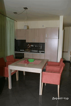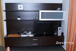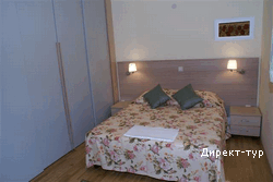 Площадью 54м2 с террасой 13м2, спальная с французской кроватью, галерея с диванчиком, гостиная с раскладным диваном, кабельное телевидение, DVD, кондиционер, кухня, обеденный стол, ванная комната. Максимальное размещение 5+1.