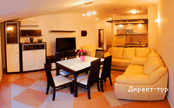 Площадью 70м2, четырехкомнатный номер, 3 спальни с французскими кроватями, в гостиной диван, кондиционер, кабельное телевидение, беспроводной интернет, новая мебель, современный интерьер, ванная комната, терраса с панорамным видом на Боко-Которский залив. Максимальное размещение - 7 человек (6+1 доп.кровать).