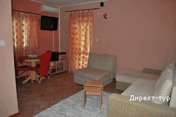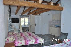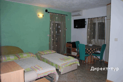 Для размещения предлагаются апартаменты - 5 трехместных и 1 четырехместный. Номера различаются цветом интерьера – красный (первый этаж), зеленый (второй этаж) и черно-белый (на последнем этаже). Вилла, окруженная садом, терраса, гриль, паркинг с видеонаблюдением, автономное водоснабжение, беспроводной интернет.
