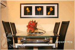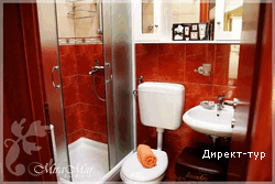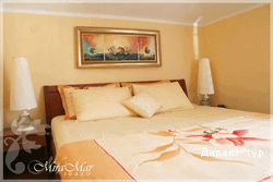 Двухкомнатный номер, в спальне французская кровать, зал с диваном, встроенная мини-кухня, холодильник, чайник, кондиционер, плазменный телевизор (спутниковое телевидение), холодильник, утюг, фен, ванная с душевой кабиной.
