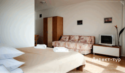 Рассчитанные на трех человек (2+1) - (общей площадью 43/50м2 – полезная площадь 32/33м2, терраса 11/17м2). Существует возможность раскладную кровать превратить в двуспальную или две односпальных кровати за счет уменьшения общего комфорта, или добавить детскую кроватку для ребенка возрастом до 3 лет.