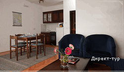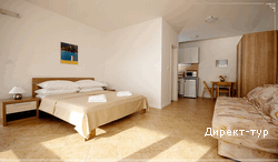 Рассчитанные на 2 человека (общей площадью 34м2 – полезная площадь 22м2, терраса 12м2). Апартаменты находятся на втором этаже. С просторной террасы открывается вид на море и Старый город. Апартаменты оборудованы широкой двуспальной кроватью, чайной кухней с барной стойкой, кабельным и спутниковым телевидением, бесплатным подсоединением к Интернет (беспроводное и стационарное), телефоном, кондиционером и сейфом. Кухня укомплектована необходимой бытовой техникой: холодильник, электроплита, микроволновая печь, посудомоечная машина, а так же все необходимые приборы для приготовления и сервировки блюд. Ванная комната вмещает душевую кабину, а также фен.