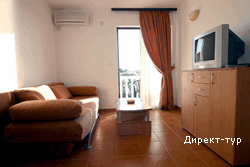 Двухкомнатный апартамент с видом на море на 2-м этаже, размещение 2+2, площадью 33 м2 + 10 м2 терраса, телевизор, кондиционер, кухня, комплект посуды, холодильник, плита, ванная.