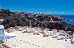 На вилле: 4 шестиместных, 1 четырехместный, 1 трехместный и 5 двухместных апартаментов, всего 41 место. Четырехэтажное здание: две большие террасы (150 м2 и 80 м2) с видом на море, зонтиками и лежаками (бесплатно), большинство апартаментов с видом на море. Уборка номеров и смена постельного белья и полотенец – каждые 3 дня. Утюг и фен по запросу, сейф на рецепции. Рядом находится магазин. На вилле бесплатно предоставляется: парковка, гриль, стиральная машина, бильярдный стол, теннисный стол, фитнес тренажеры. Сауна платно (5 евро/час). В номерах нет телевизоров, в ресторане большой телевизор для общего пользования.