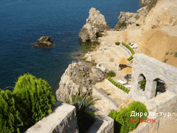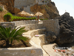 В двух минутах собственный оборудованный пляж (бесплатно) с баром, зонтиками и лежаки. В 100м от виллы - бетонная платформа, куда нужно спускаться по ступенькам. Также в нескольких минутах от виллы находится нудистский пляж.