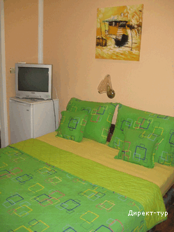 Трехэтажное здание с двух- и трехместными номерами, четырехместными апартаментами. На каждом этаже кухня для общего пользования. В 30 м - ресторан с открытой террасой. Сейф на рецепции, парковка на 15 мест. Уборка номеров: раз в 5 дней, смена полотенец: раз в 3 дня.