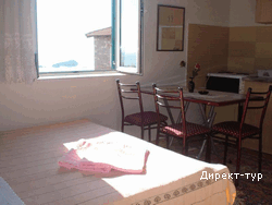 Отдельный вход, балкон с видом на море, две спальни с французской кроватью с возможностью дополнительного места, кухня полностью укомплектована, плита, чайник, холодильник, обеденный стол, Интернет, кондиционер, в ванной душевая кабина, нет телевизора. Максимальное размещение – 6 человек.
