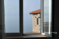 Двухэтажная вилла: на первом этаже находится кухня для общего пользования с большой открытой террасой со столами и видом на море, на втором этаже находится 4 двухместных номера с возможностью дополнительной кровати и один апартамент на 6 человек, рядом – ресторан «Антигона» с открытой террасой, с самым красивым видом на море!